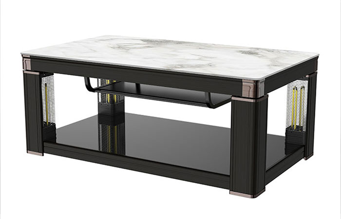 巖板、隱形電磁爐、智能語(yǔ)音,三秒速熱,電鍍轉(zhuǎn)角,中層架,黑木紋色,立柱顯屏,USB插口,收納線盒,雙開關(guān)控制